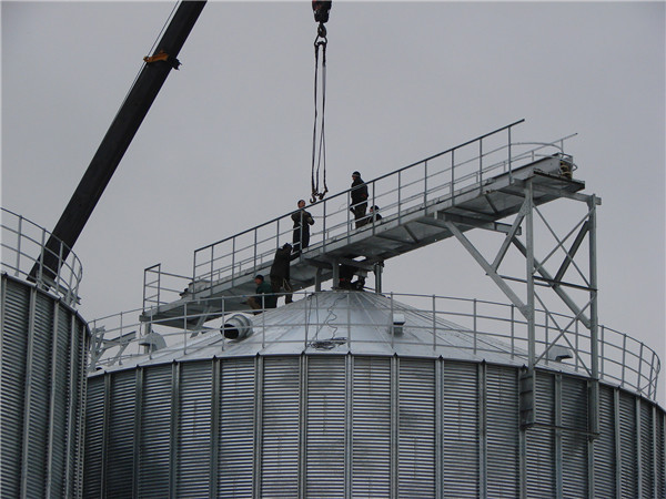 、倉體:倉筒鍍鋅板采用國產優質鍍鋅板由倉壁板加工設備經過一系列工序加工制造,由圍板、立柱、倉門、倉門平臺、內外爬梯等配件。