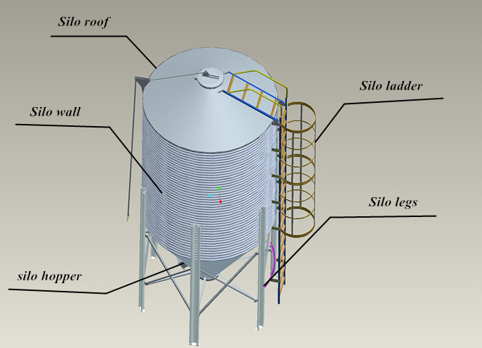 此型號(hào)鋼板倉(cāng)廣泛應(yīng)用于飼料加工廠、榨油廠、養(yǎng)殖場(chǎng)、個(gè)人糧食倉(cāng)儲(chǔ)系統(tǒng),采用表面275g/m2熱鍍鋅加工而成,使用壽命達(dá)25-30年。