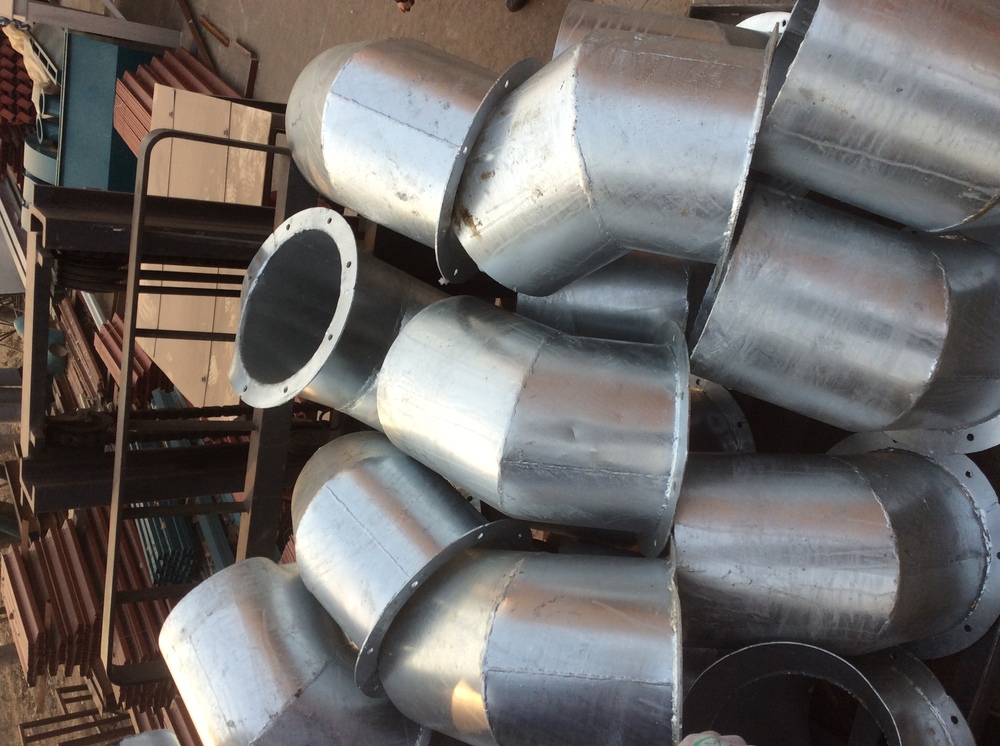 安裝時,根據倉徑的大小,采用多個吊裝架,吊裝架上固定一個手動葫蘆,使用特制的吊板用螺栓固定在倉壁墻板上,緩緩提升倉體。采取自上而下的安裝方式,即先安裝頂蓋、上層墻板,然后在裝中層墻板,再裝下層墻板,后將整個倉固定在基礎上。筒倉的構件全部采用高強度螺栓連接,安裝方便、迅速、可靠。