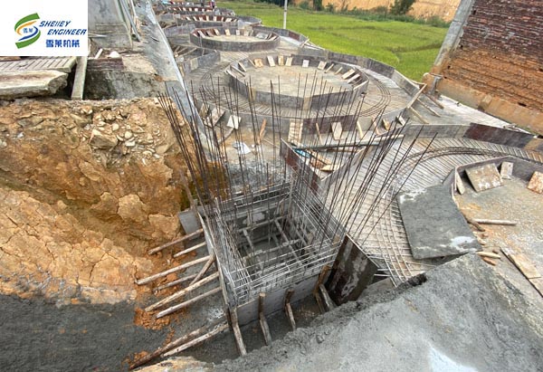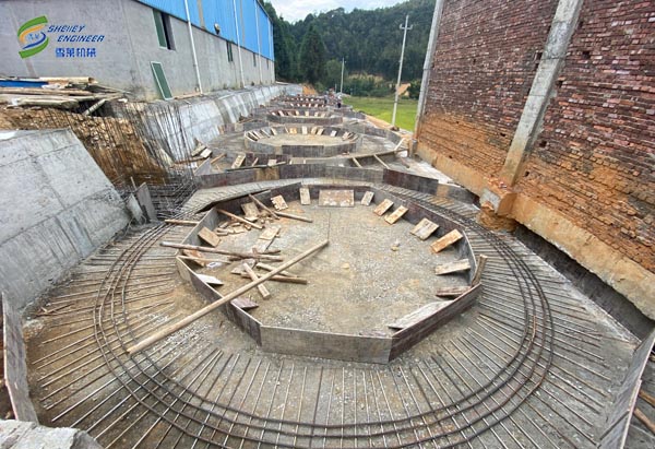 此項目為福建地區(qū)養(yǎng)豬場玉米和豆粕倉儲項目。萬丈高樓從地起,地基的好壞不僅關(guān)系到房屋能否長期居住,以使房屋不至變形、開裂、沉降等,好的地基還能使建好后的房屋更有儀式感和立體感。糧倉的建設(shè)亦是如此。鋼板倉廠家雪萊公司的地基圖紙都是經(jīng)過專業(yè)的設(shè)計院設(shè)計并出具到客戶手中的,其中需要客戶提供地勘報告,然后設(shè)計院根據(jù)地勘報告因地制宜的設(shè)計出立筒倉地基圖紙,從而全方位的保證鋼板倉的安全建設(shè)和使用。