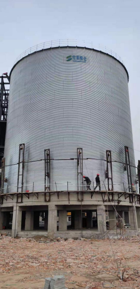 1000T錐底鋼板倉主要用于存儲玉米。具有機械化程度高、易出料,使用壽命長等優點。