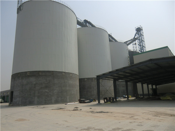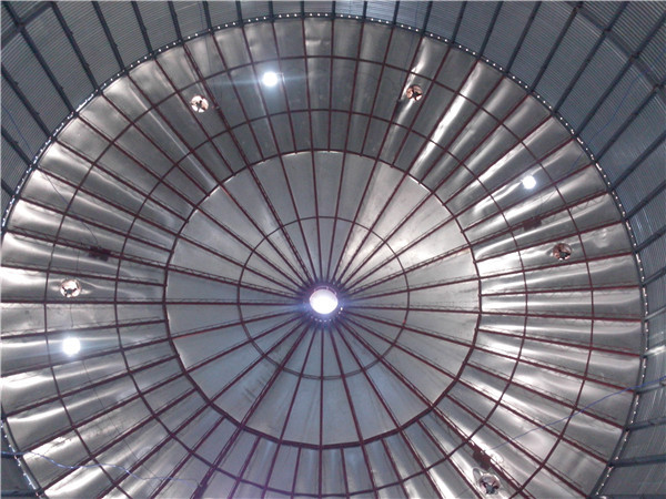 4、 便于實(shí)現(xiàn)機(jī)械化,鋼板倉均有配套設(shè)備,可以很方便的配上進(jìn)倉、出倉、掃倉、通風(fēng)、烘干、測溫、測滿等設(shè)備,達(dá)到安全儲(chǔ)糧的目的。